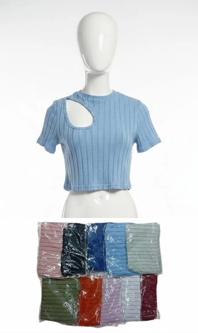 Blusa de tela tipo shein, con abertura en la parte del pecho.