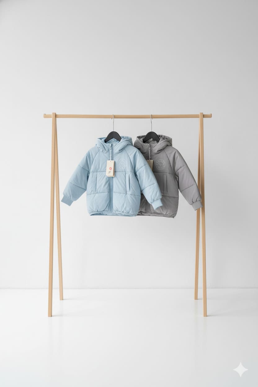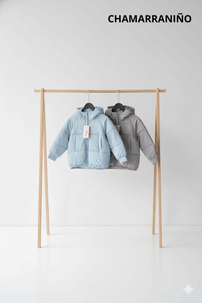 CHAMARRA DE NIÑO IDEAL PARA EL INVIERNO, COLOR GRIS Y AZUL CIELO