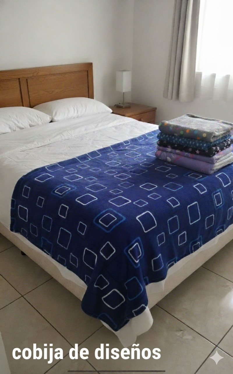 COBIJA CON BORREGO TAMAÑO KING SIZE DE DIFERENTES DISEÑOS MUY LLAMATIVOS Y LINDOS.