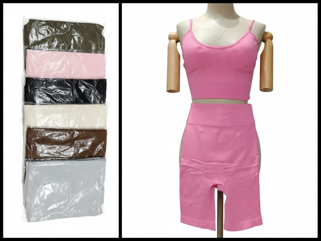 Conjunto de top con short biker, tela de licra, con ajustador en los tirantes