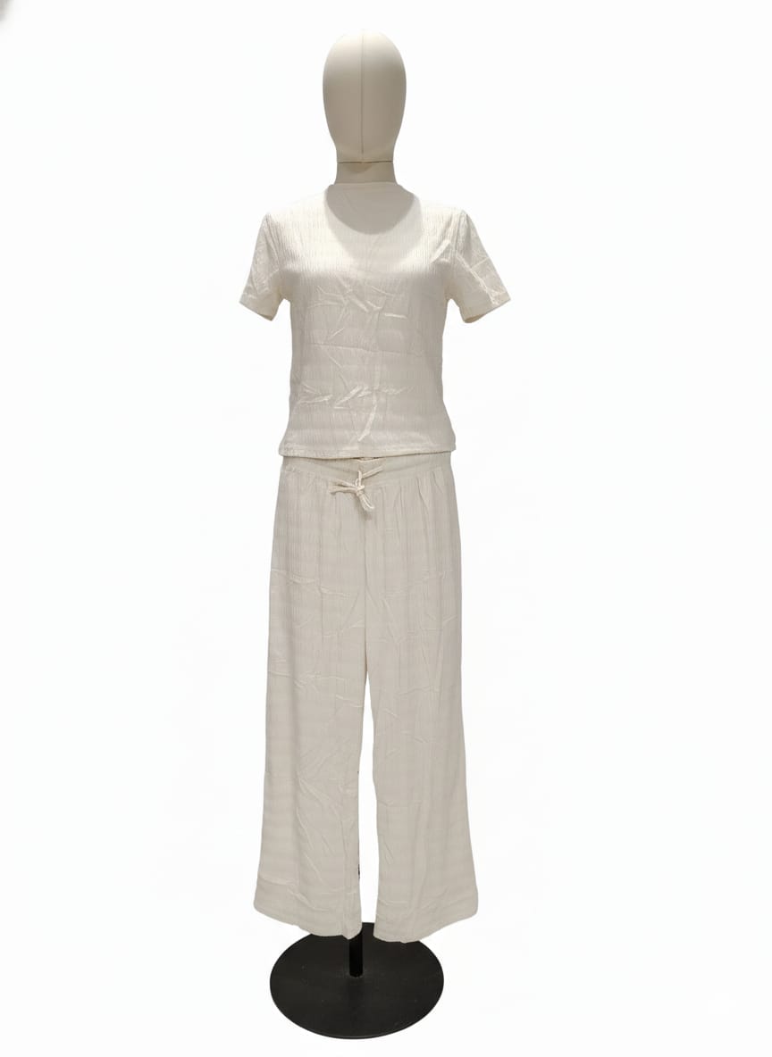 Conjunto de tela fresca, con resorte en la parte de la cintura ajustador, bolsitas a los lados, blusa larga, con textura