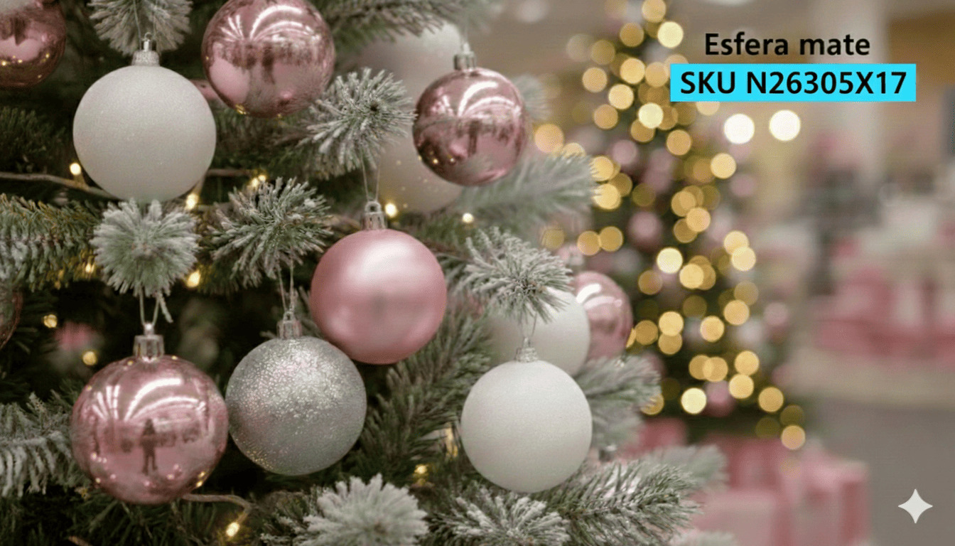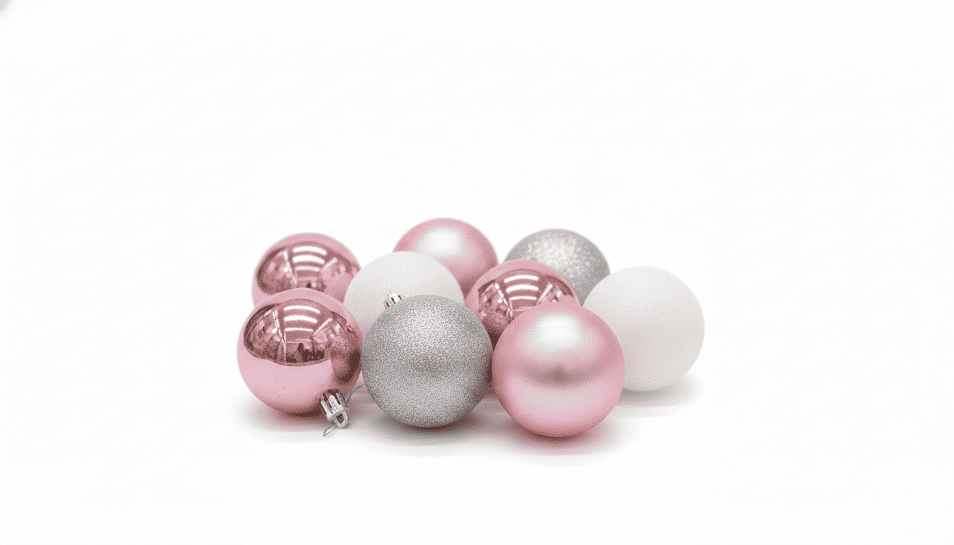 CAJA DE ESFERAS COLOR ROSA ,BLANCA Y PLATA
