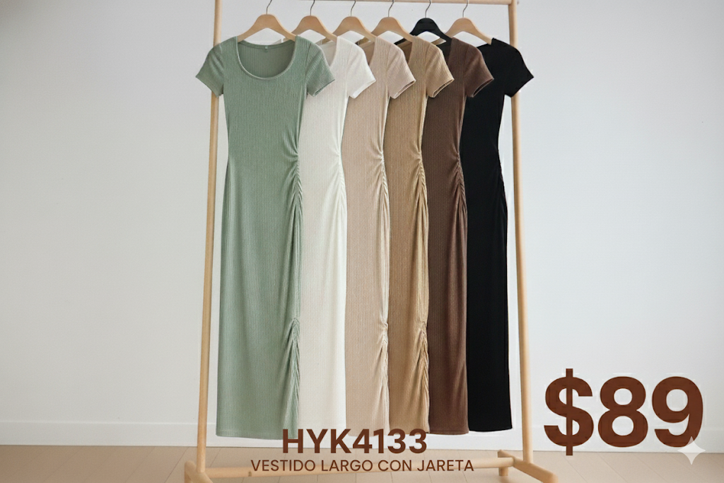 VESTIDO COMODO CON JARETA AJUSTADORA A UN COSTADO.