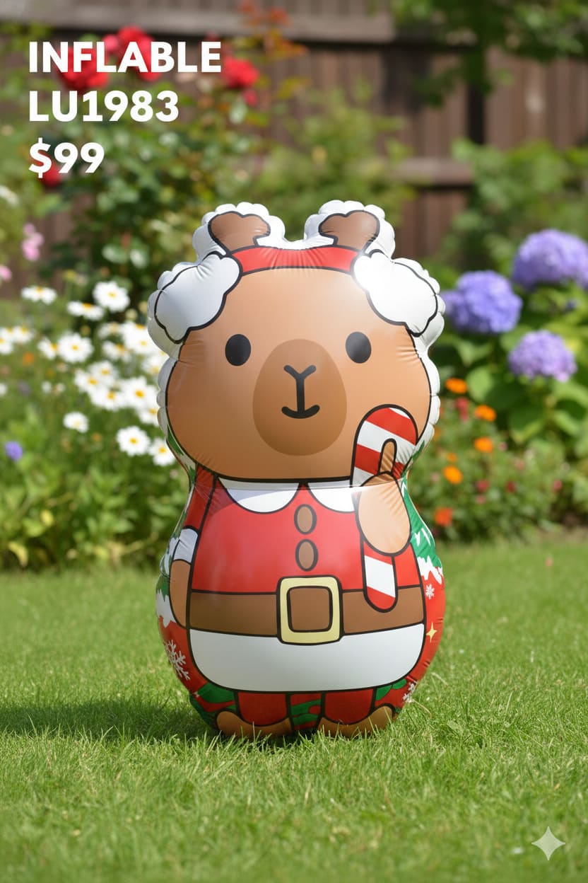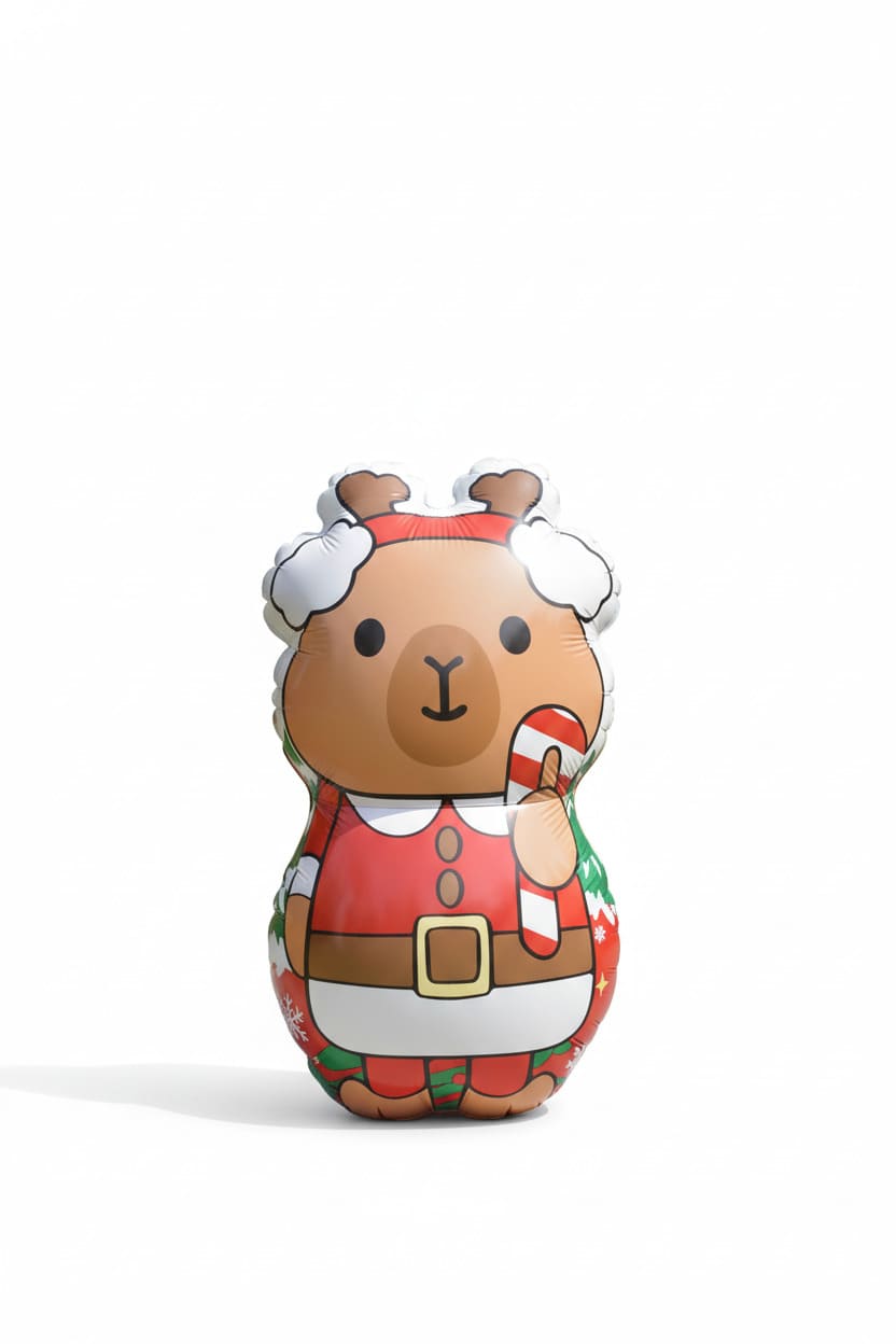 INFLABLE DE CAPIBARA CON LUZ INTERNA VIENE CON UN CONTROL PARA SELECCIONAR EL COLOR DE LA LUZ QUE LO ILUMINA .