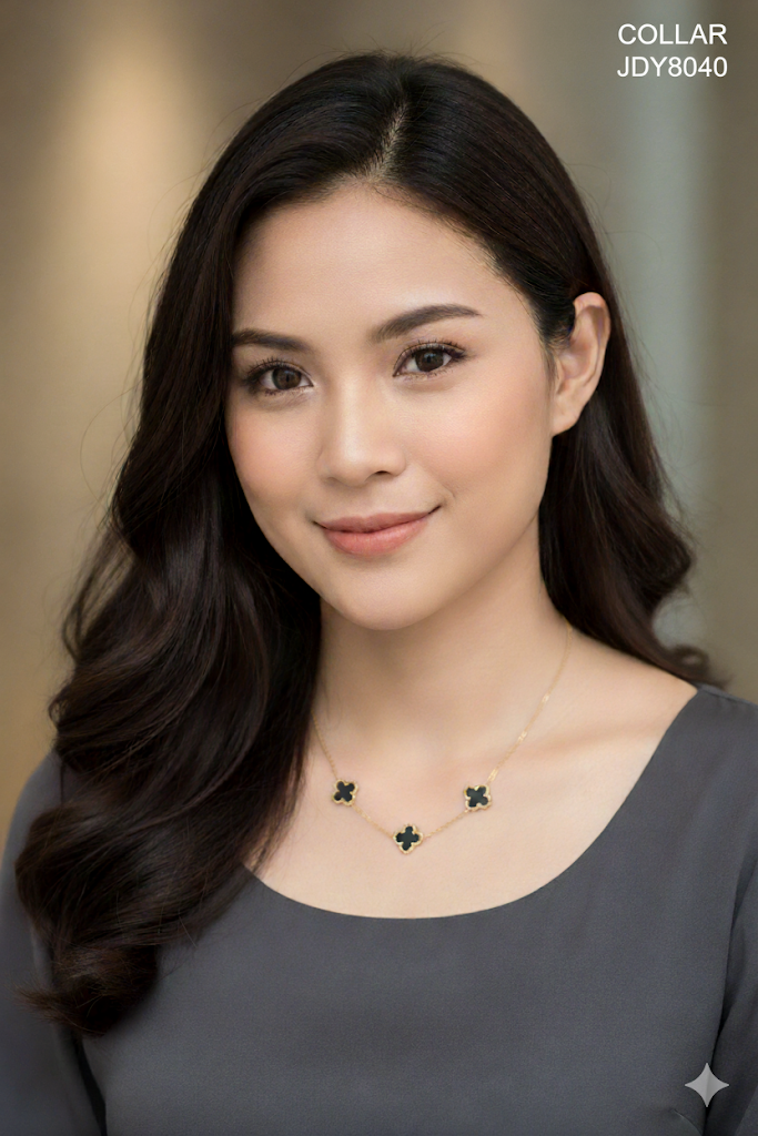 COLLAR DORADO, DE TREBOLES NEGROS.