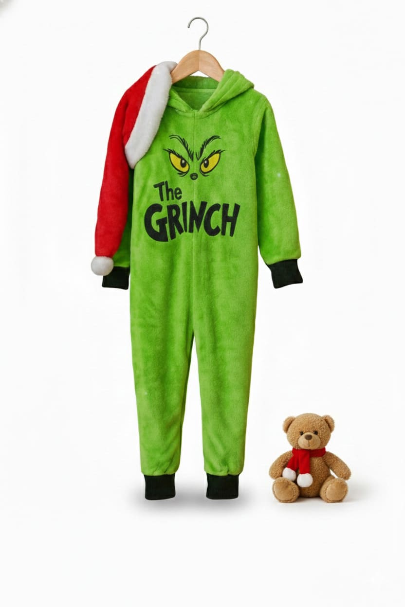 MAMELUCO VERDE DE GRINCH NIÑO CON GORRO