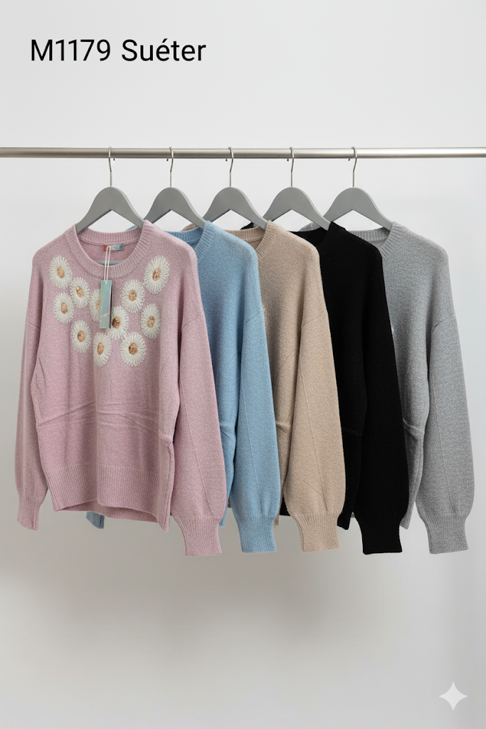 SUETER DE FLORECITAS STRECH DE COLOR ROSA, AZUL CIELO, CAFE CLARO, OBSCURO.