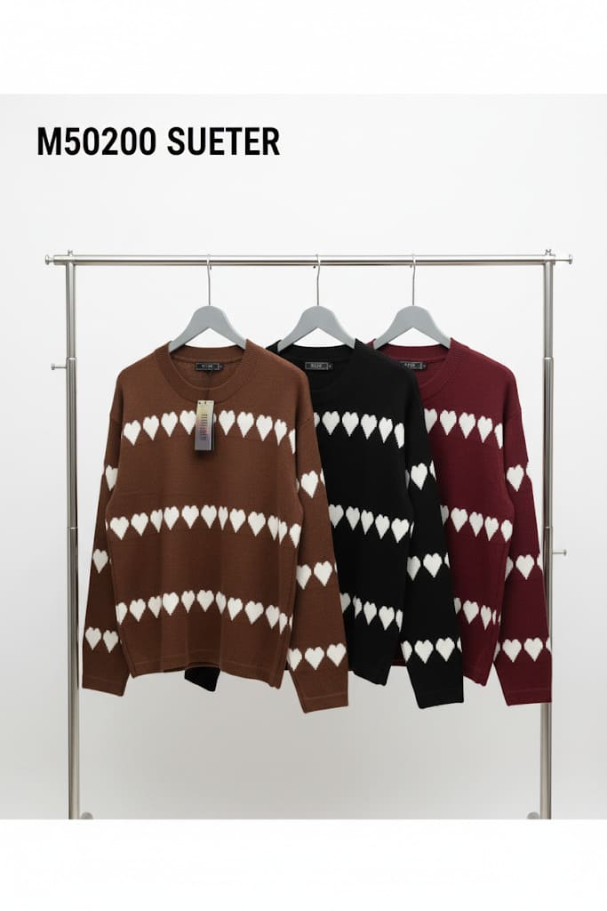 SUETER CON DECORACION DE CORAZON STRECH, CAFE, NEGRO, GINDA