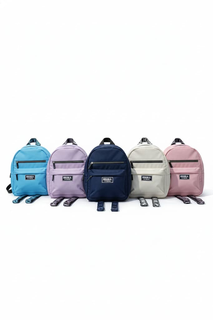 MOCHILA CHIQUITA, ROSA BB, AZUL CIELO, HUESO, LILA, AZUL, MARINO. CUENTA CON 2 SIERRES EXTERNOS Y UNO INTERNO.