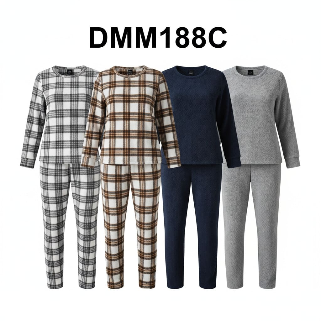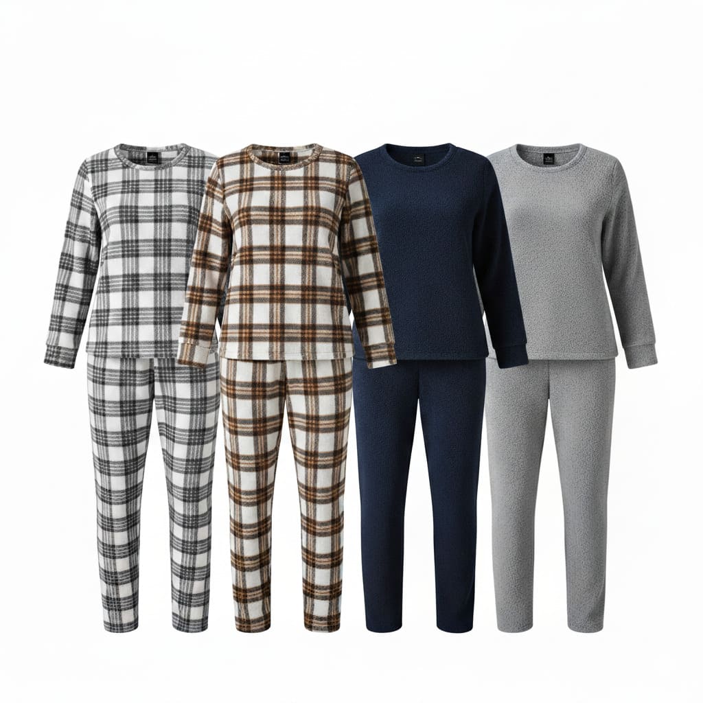 PIJAMA UNISEX POLAR COLOR AZUL GRIS, BLANCO DE CUADROS GRISES Y CAFE DE CUADROS CAFE