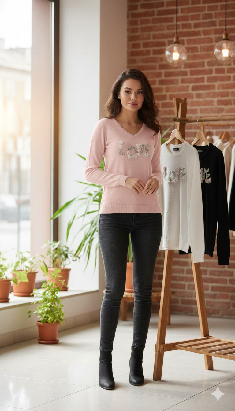 SUATER DE PEDRERIA CON LA PALABRA LOVE Y LLEN DE PEDRERIA