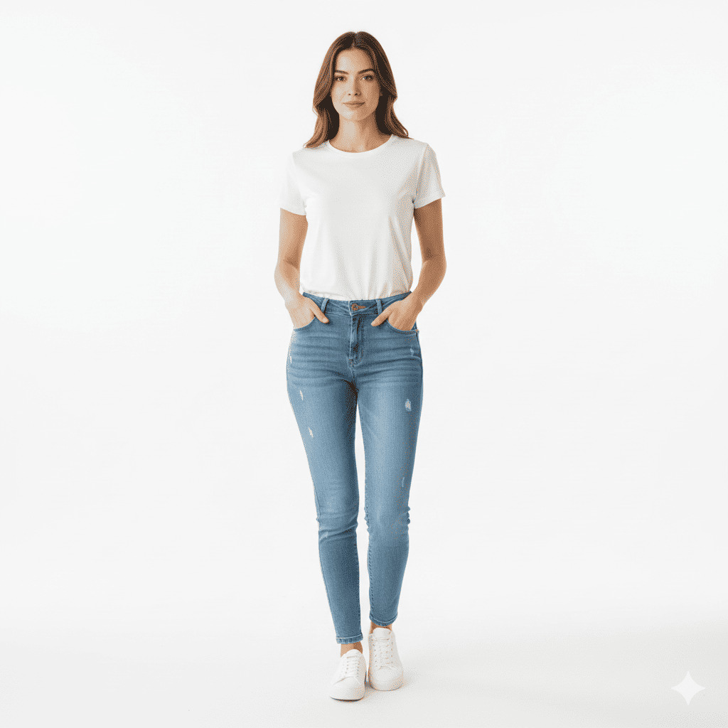 pantalon de mezclilla azul claro con peueñas rasguras